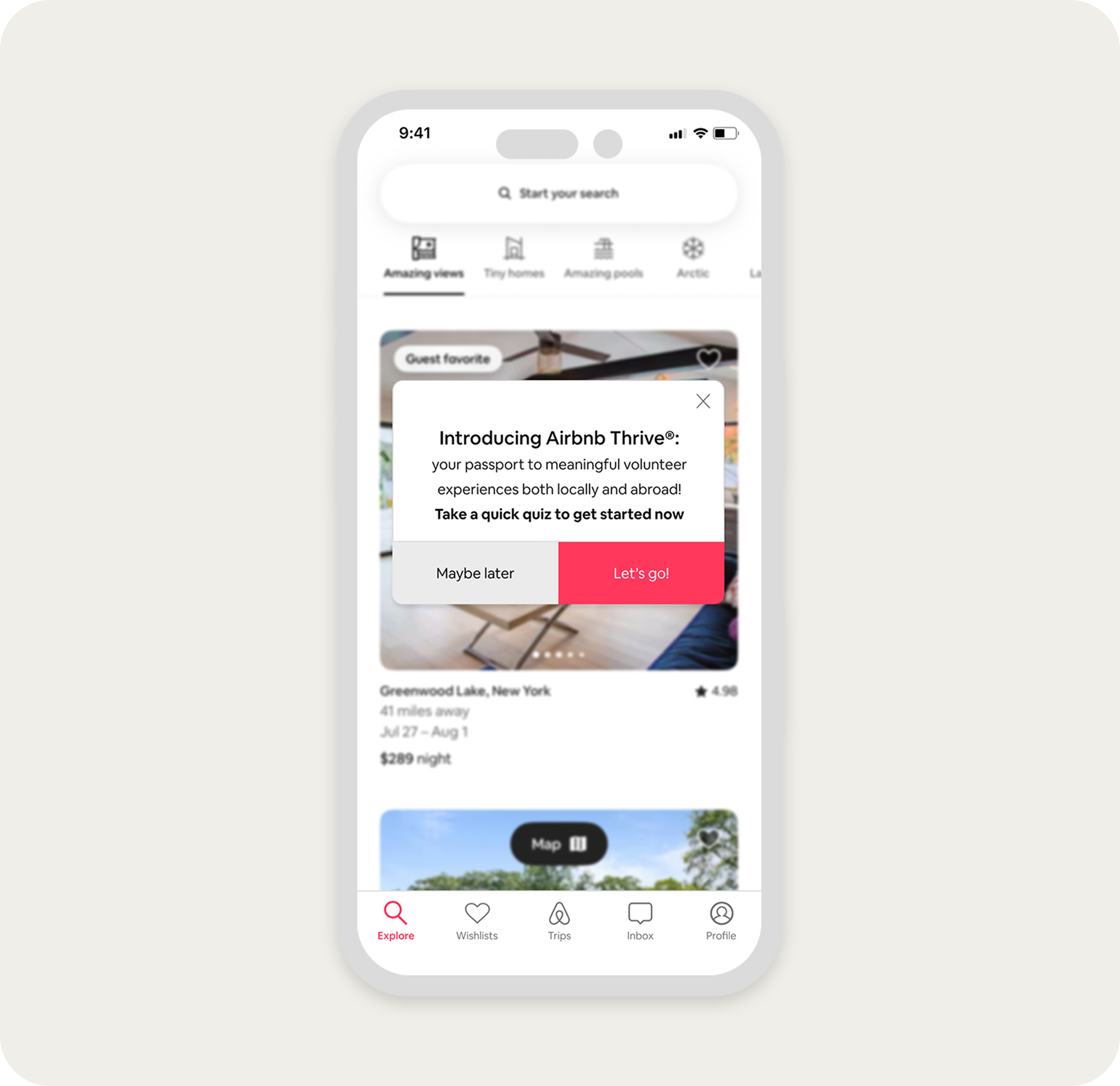 As a generation that is still trying to figure out who they are, personality type quizzes are popular amongst Gen-Zs. Airbnb Thrive can tap into this existing behavior and help Gen-Zs get a sense of what volunteer causes they could be interested in with a short quiz upfront